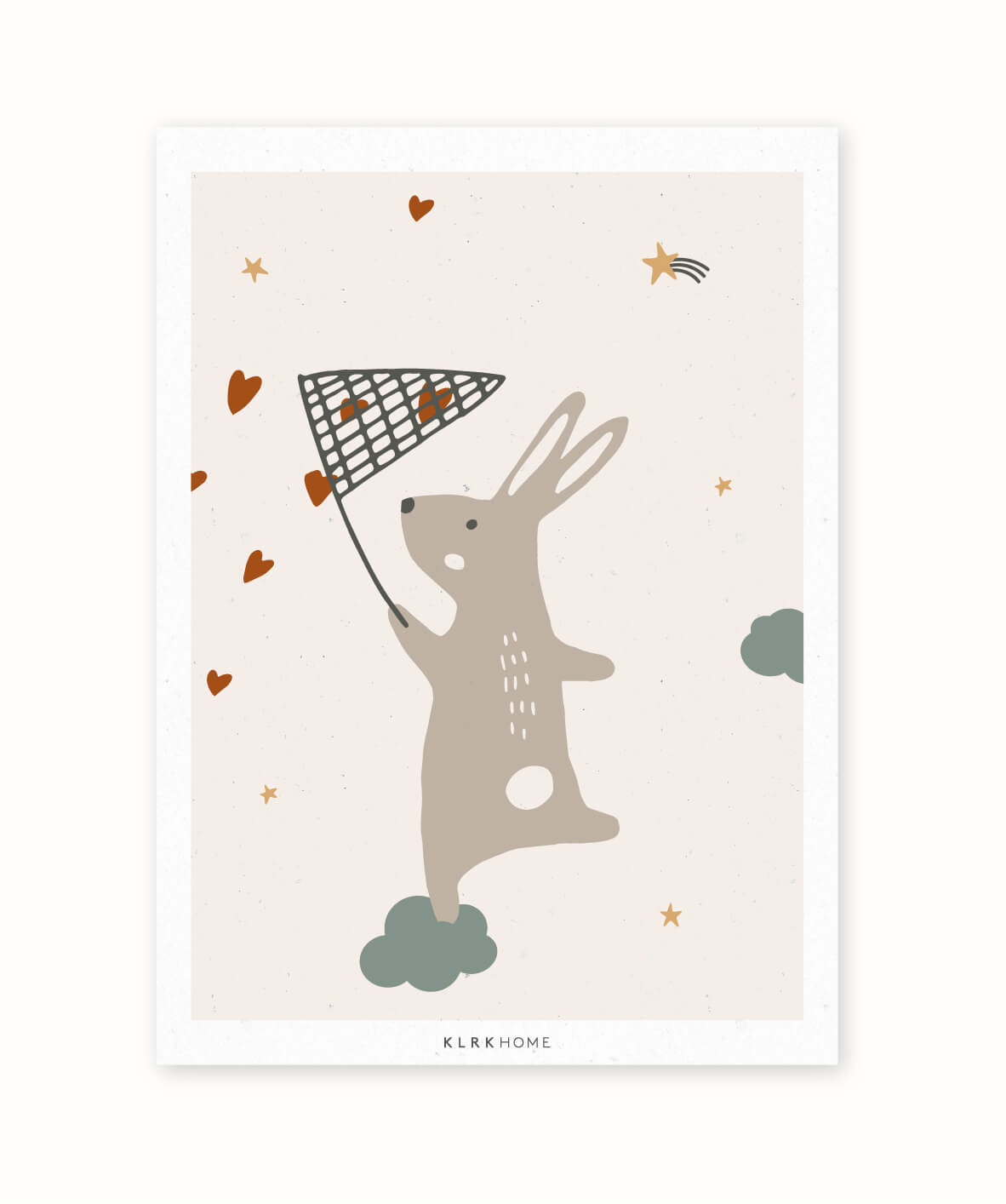 Plakáty, které doladí pokojíček vašich nejmenších k dokonalosti. Obrázek s motivem králíčka, který chytá srdíčka a planetky k sobě skvěle pasují a navíc je můžete sladit i s našimi ostatními výrobky KLRK HOME z kolekce UNIVERSE.