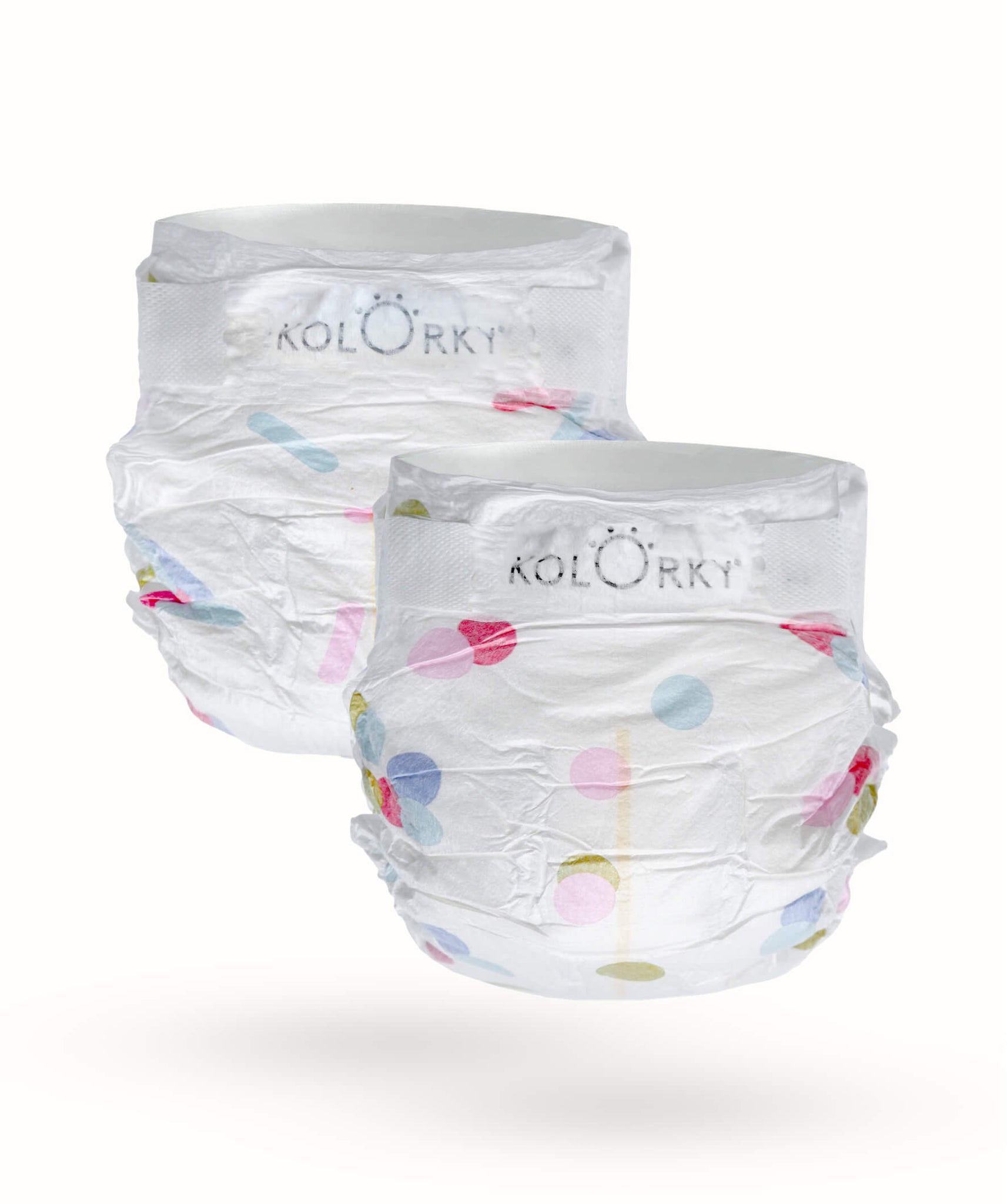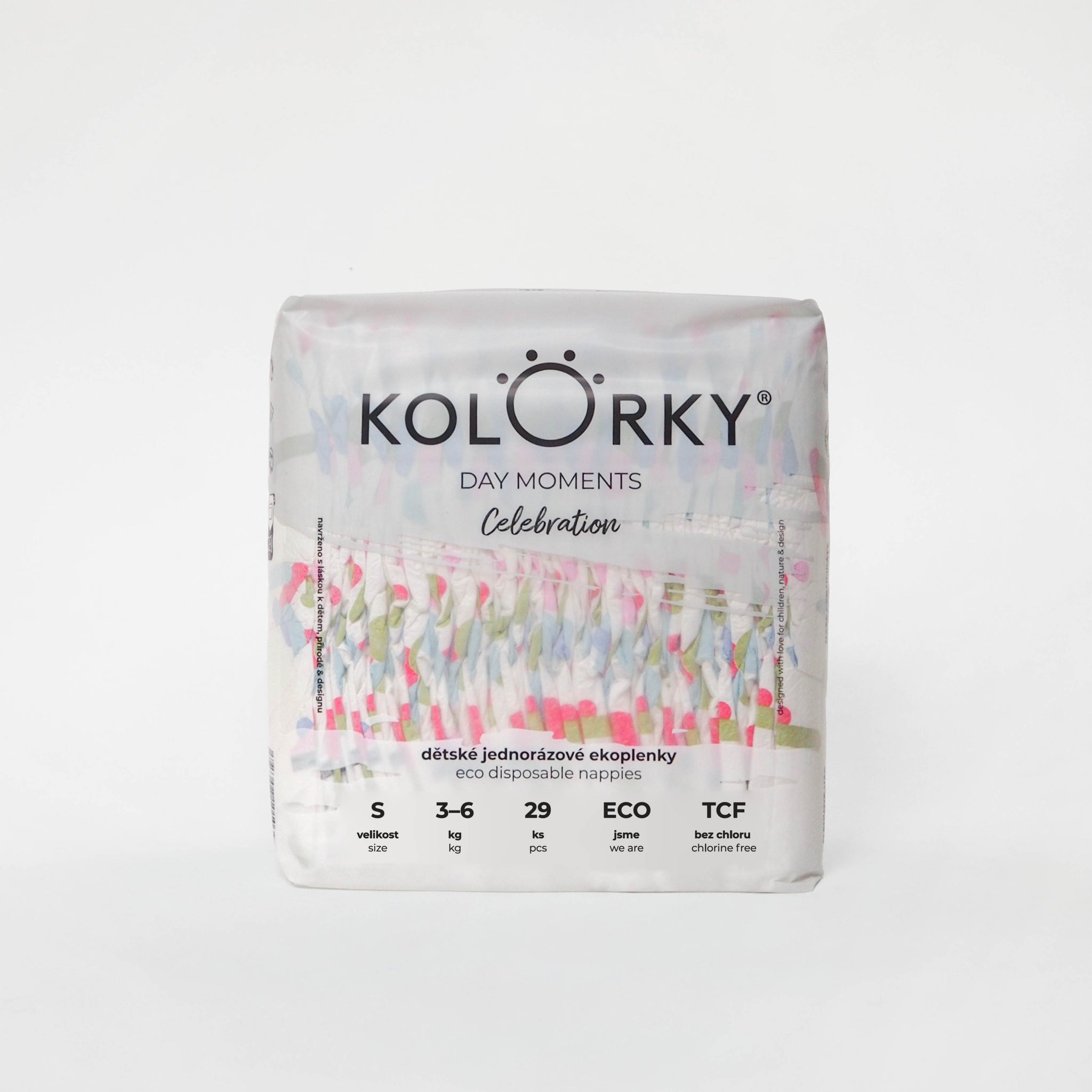 DAY MOMENTS jsou navrženy tak, aby se miminku co nejlépe přizpůsobily, nikde netlačily, byly prodyšné a vše zůstalo na svém místě. Savé jádro je tvořeno perforovanou netkanou textilií, lisovanou vrstvou buničiny a SAP gelem. Díky tomu jsou plenky velmi tenké a neomezují miminko v pohybu. Patentovaná Flash dry technologie, zajišťuje, že tekutina je rychle odvedena od miminka a pevně uzamyká v jádru nejen tekutin, ale i zápach. Absorpční kanály zajišťují, že se tekutina rozprostře po celém savém jádru a nehromadí se na jednom místě. KOLORKY tak odvedou vlhkost rychle pryč a zanechají dětskou pokožku suchou a klidnou. Samozřejmostí je indikátor vlhkosti, který vám napoví, že je miminko potřeba přebalit. Všechny naše plenky jsou dermatologicky testovány a certifikovány Státním zdravotnickým ústavem - SZÚ.